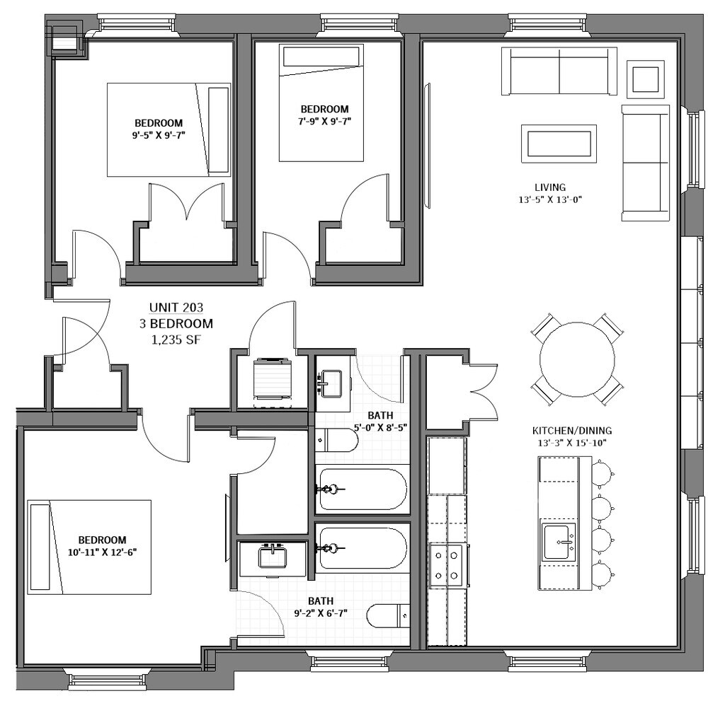 3x2 - Image Apartment Unit: 203Apartment Model: 3x2$5,2003 Bedroom, 2 Bath, 1235 sq ftAvailable June 1, 2026