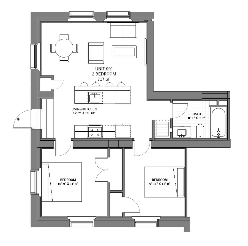 2x1 - Image Apartment Unit: 001Apartment Model: 2x1$3,2002 Bedroom, 1 Bath, 717 sq ftAvailable June 1, 2026Floorplan 2x2