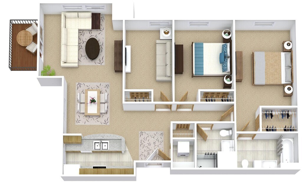 2 Beds, 2 Baths, 1282 sq ftModel Gallery