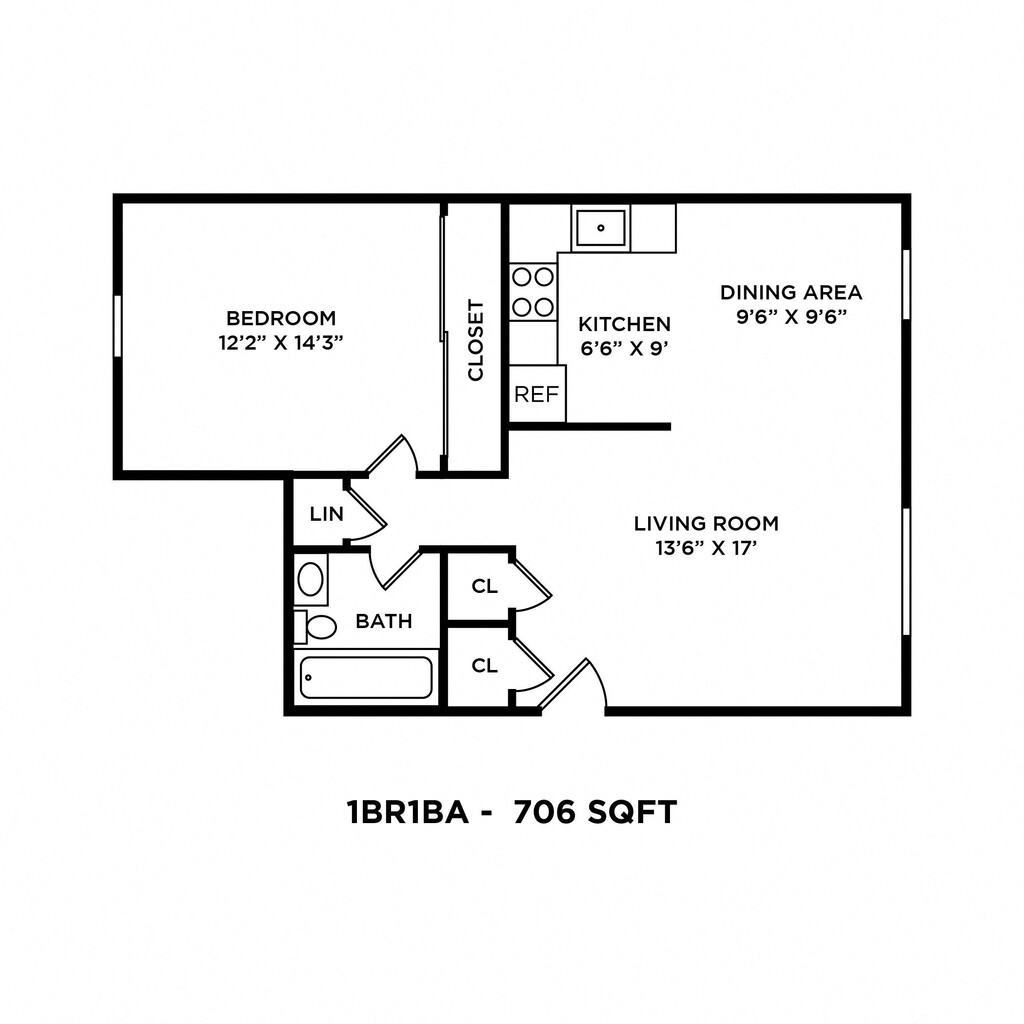 Apartment Model: One Bedroom - 706 sqftFrom $1,4501 Bedroom, 1 Bath, 706 sq ftAvailable Now![]()