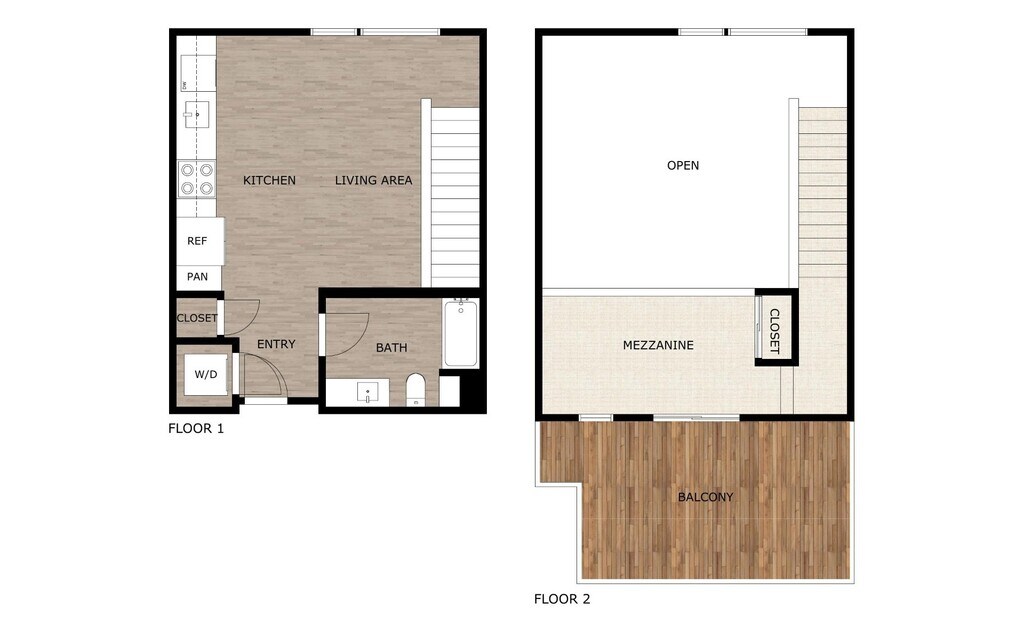 Mezzanine - Floorplan 1 Apartment Unit: 323Apartment Model: Mezzanine$2,4251 Bedroom, 1 Bath, 673 sq ftAvailable November 10, 2025Open One Bed - A
