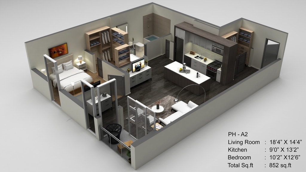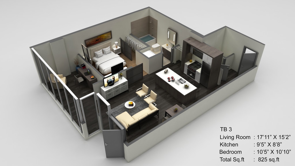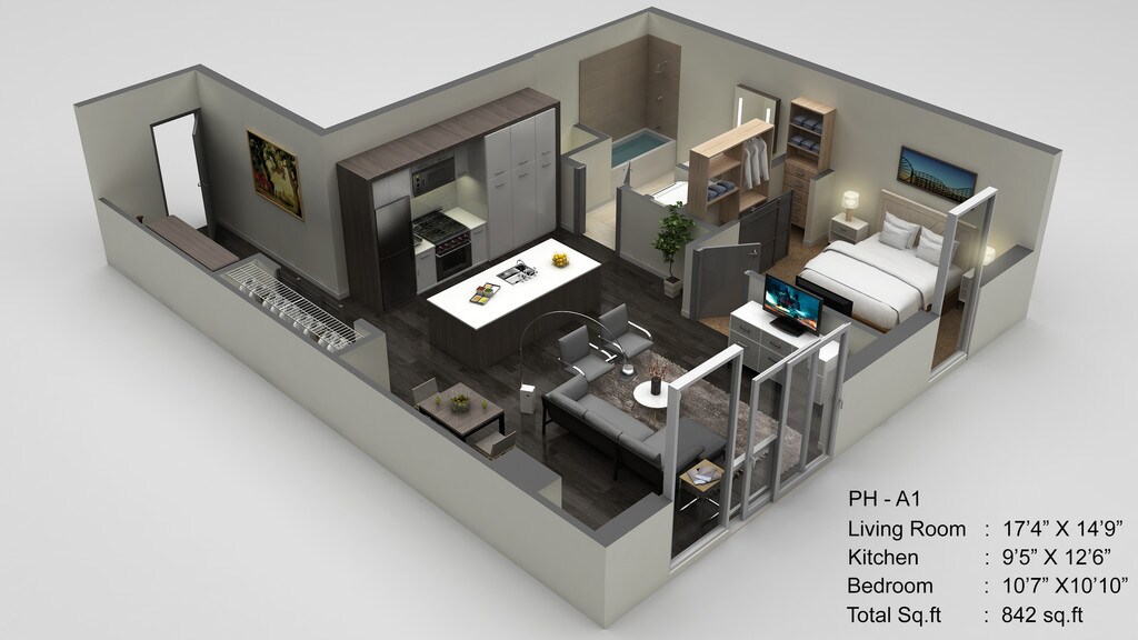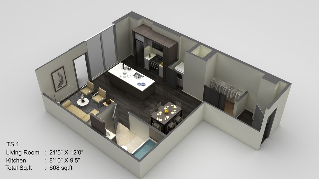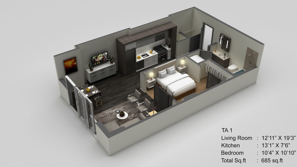 Studio, 1 Bath, 608 sq ftModel Gallery