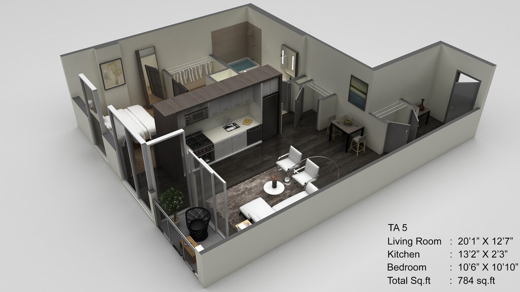 TA 5 - Floorplan 1 Apartment Unit: 0503Apartment Model: TA 5$1,7041 Bedroom, 1 Bath, 784 sq ftAvailable NowTA 1