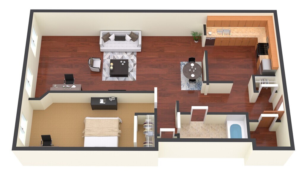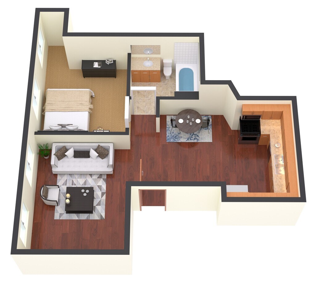 Studio, 1 Bath, 495 sq ftLargest StudioThis is the largest Studio at this PropertyModel Gallery