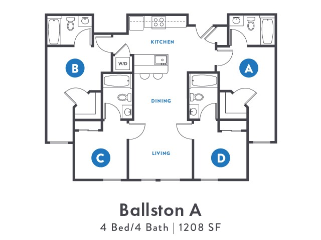 Ballston A - Floorplan 2 Apartment Unit: StandardApartment Model: Ballston A$9854 Bedroom, 4 Bath, 1208 sq ftAvailable NowBallston C