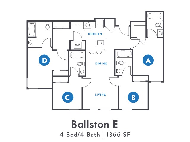 Ballston D - Floorplan 2 Apartment Unit: StandardApartment Model: Ballston D$9854 Bedroom, 4 Bath, 1366 sq ftAvailable Now
