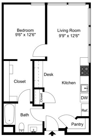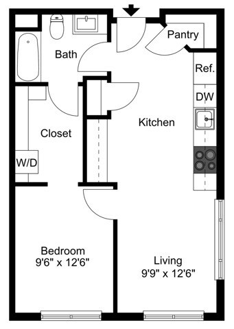 Studio 14 - On-Street Parking - Floorplan 12 Floor plans are artist's rendering. All dimensions are approximate. Actual product and specifications may vary in dimension or detail. Not all features are available in every rental home. Please see a representative for details.