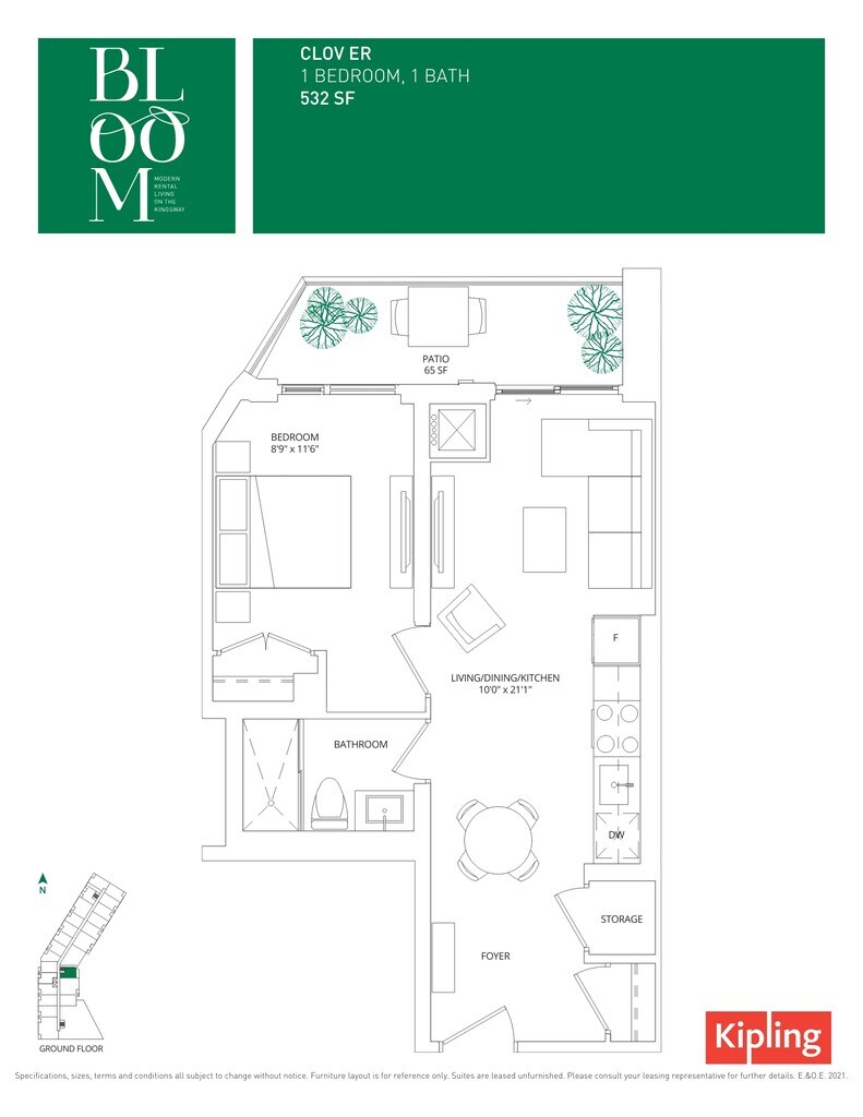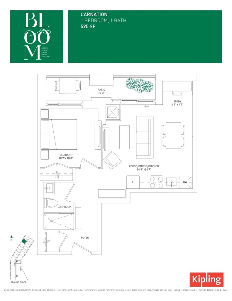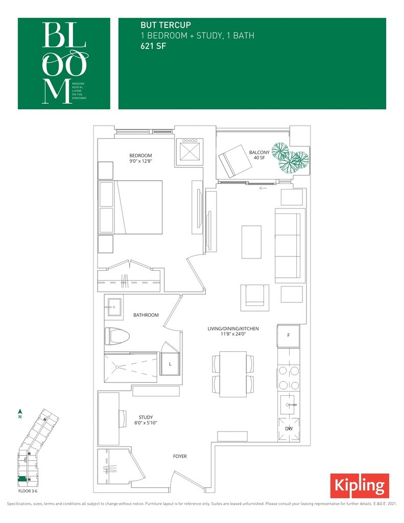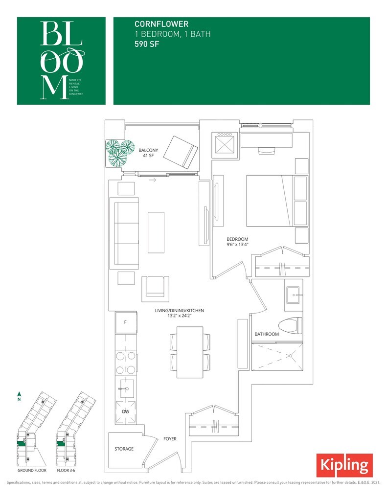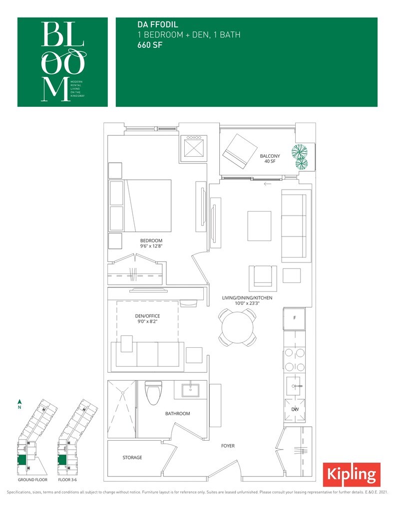 Apartment Unit: AzaleaApartment Model: One Plus Den$2,2401 Bedroom, 1 Bath, 561 sq ftAvailable Now![]()