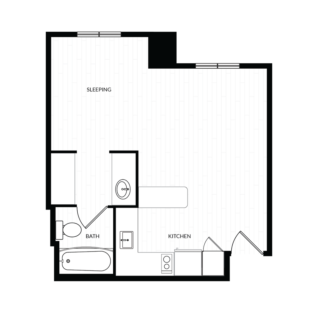 Apartment Model: Studio B End UnitFrom $1,275Studio, 1 Bath, 477 sq ftAvailable Now![]()