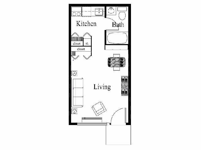 Apartment Model: StudioStudio, 1 Bath, 288 sq ftUnavailable![]() - Studio - Floorplan 1
