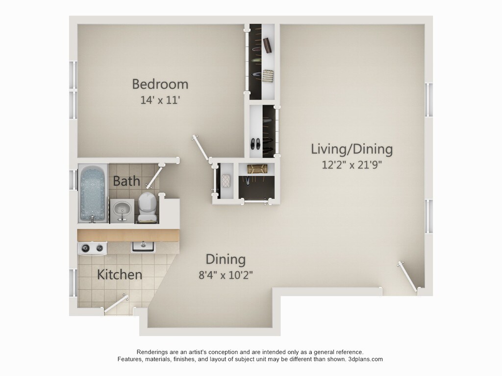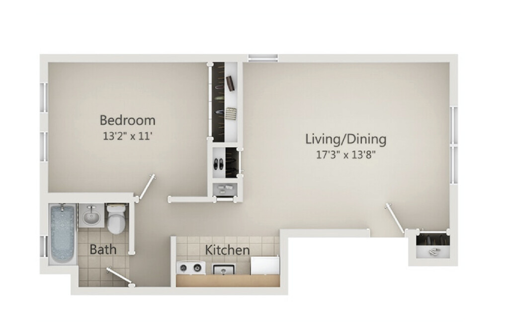 1 Bed, 1 Bath, 540 sq ftModel Gallery