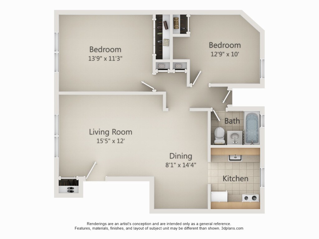 2 Beds, 1 Bath, 1000 sq ftModel Gallery