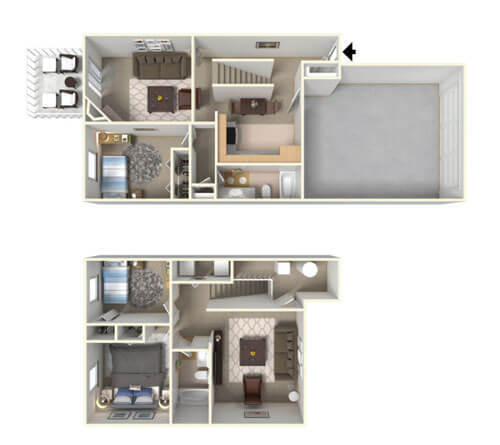 - 2 Bedrooms- Mayberry2 Beds, 1.5 Baths, 1030 sq ft- Model Gallery- Floorplans- Availability Details- Availability Date - Unit - Sq Ft - Call for Availability - Mayberry - 1030 sq ft - Model Amenities and Features- Features- High Speed Internet Access