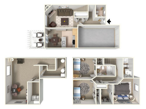 Apartment Model: GreenbriarCall For Rates3 Bedroom, 2 Bath, 1205 sq ftUnavailable![]() - Greenbriar - Floorplan 1