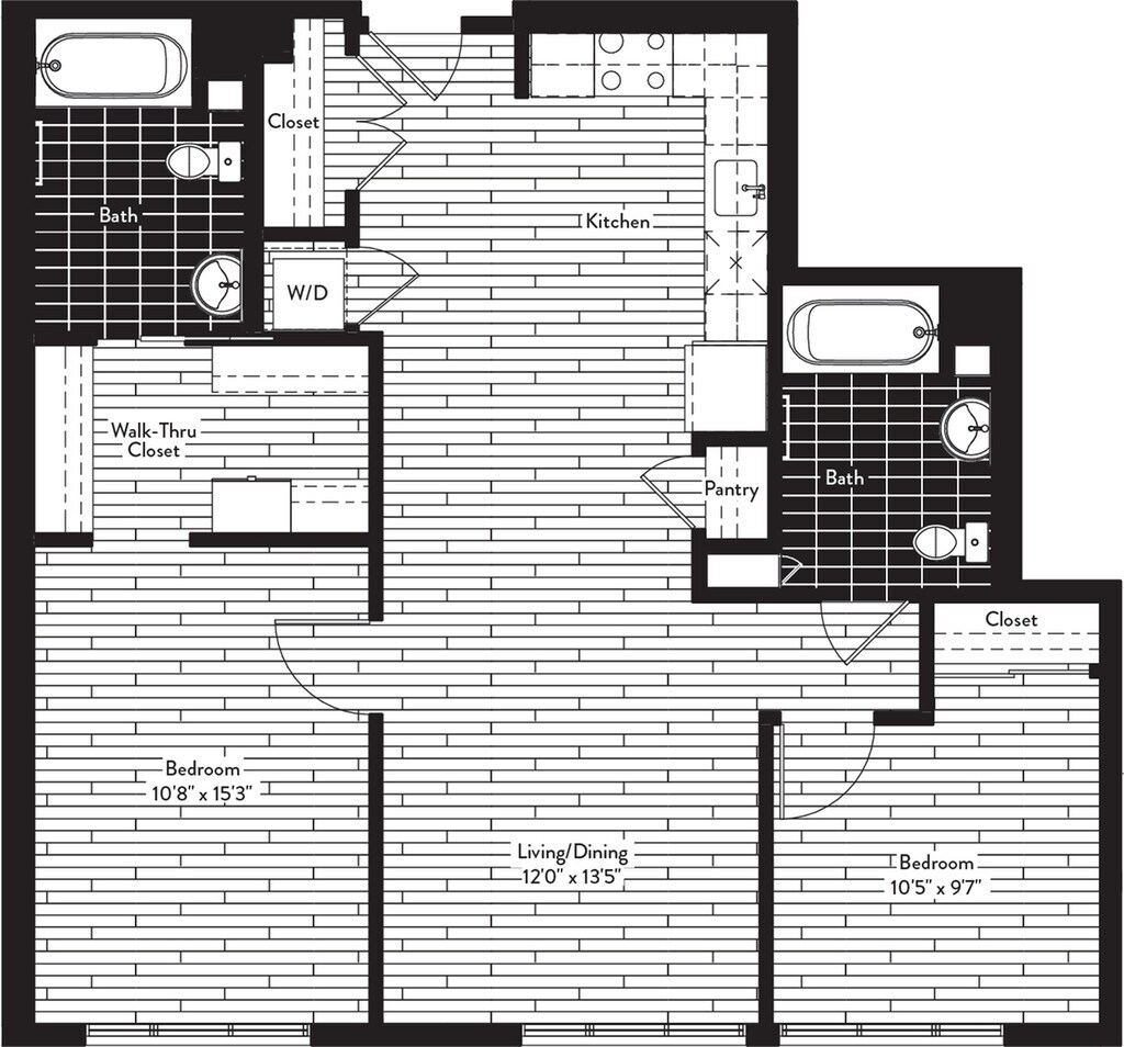 Apartment Model: B042 Bedroom, 2 Bath, 1005 sq ftAvailable NowFloor plans are artist's rendering. All dimensions are approximate. Actual product and specifications may vary in dimension or detail. Not all features are available in every rental home. Please see a representative for details.