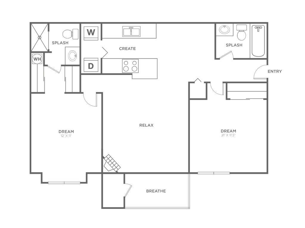 1x1 Classic - Floorplan 1 2 Bedrooms