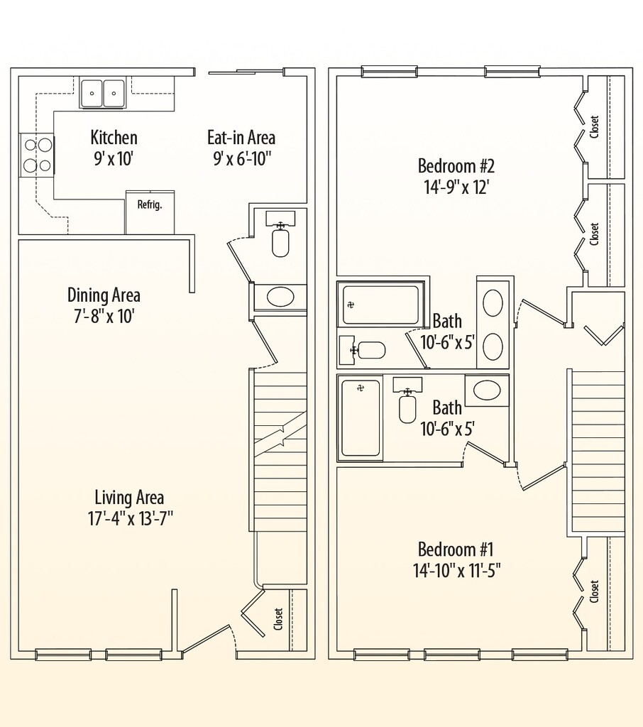 2 Beds, 2.5 Baths, 1068 sq ftAvailable NowModel Gallery