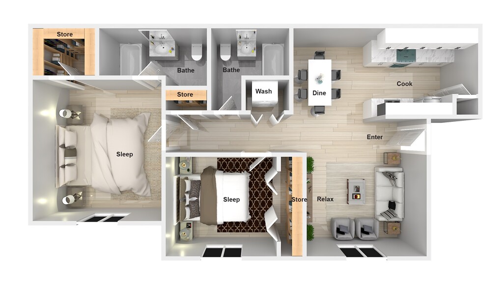 2 Beds, 2 Baths, 867 sq ftAvailable NowModel Gallery