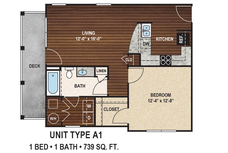 1 Bed, 1 Bath, 730 sq ftAvailable NowModel Gallery