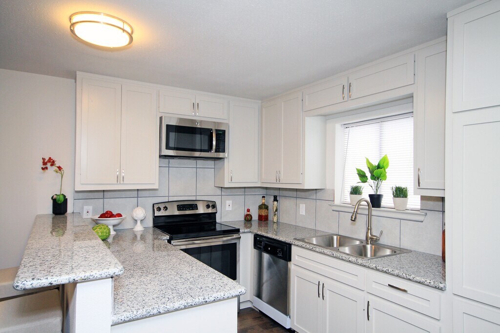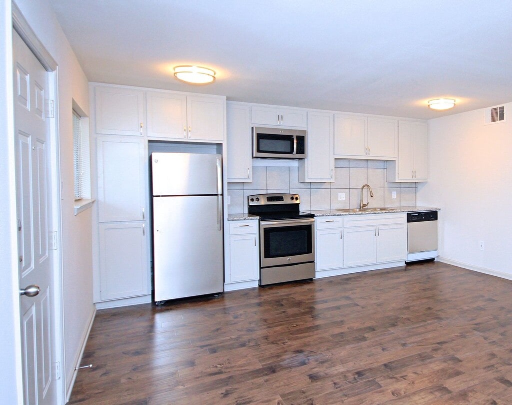 All of our floor plans have the same beautiful remodeled interiors with hardwood floors, stainless steel appliances and granite in the kitchens and baths and full sized washer. dryers! We offer deposit programs, second chance leasing. Come see our beautiful units and call about current specials! To tour our property and view our amenities please call us a