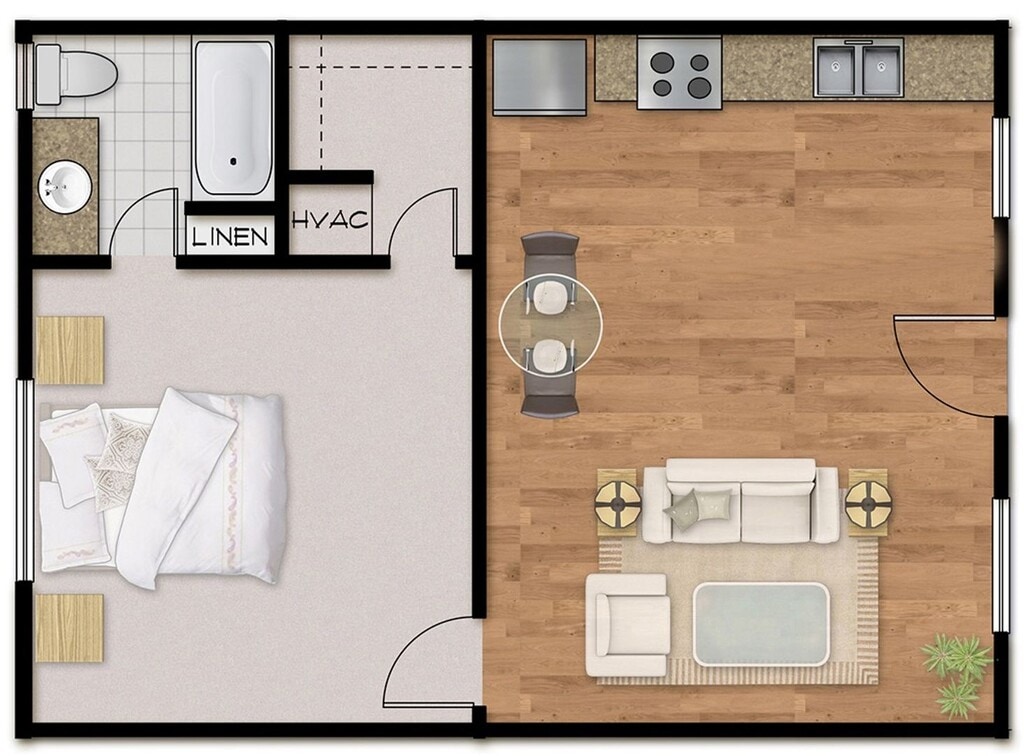 1Bed 1Bath Plan B Furnished - Image 1 ![]()