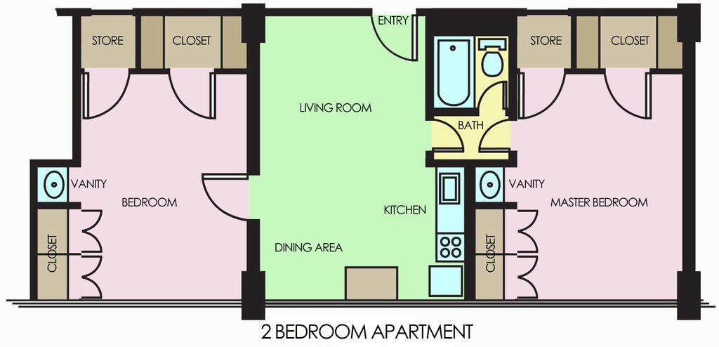 Apartment Model: 2 BR traditional2 Bedroom, 1 Bath, 870 sq ftUnavailable![]()