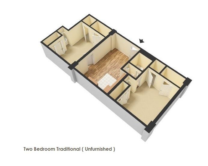 1 BR Traditional - Floorplan 3 2 Bedrooms
