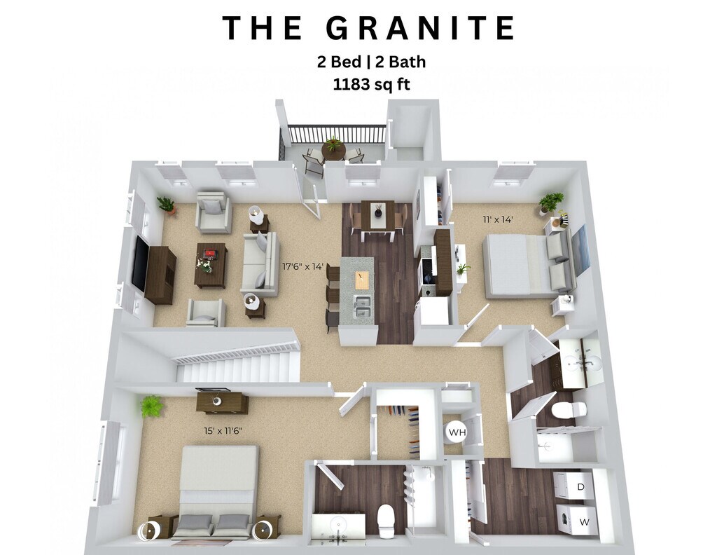 Apartment Model: The Granite2 Bedroom, 2 Bath, 1183 sq ftUnavailable![]()
