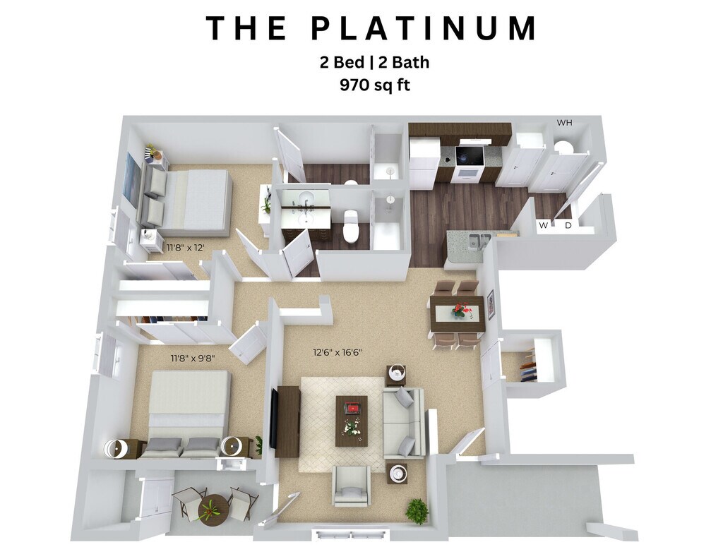 Apartment Model: The Platinum2 Bedroom, 2 Bath, 970 sq ftUnavailable![]()