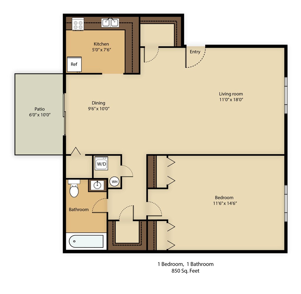 1 Bed, 1 Bath, 850 sq ftModel Gallery