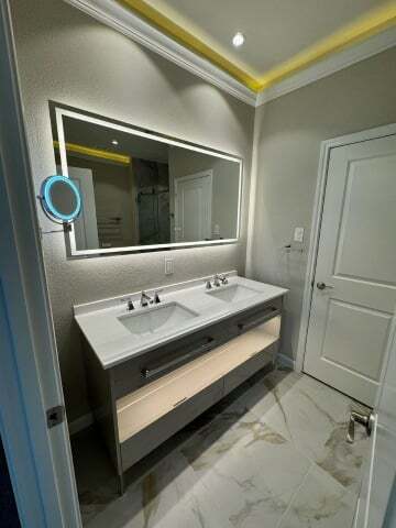 Imagine that you live in a home that checks all the boxes for leisure. You will enjoy 4-star energy-efficient appliances and granite countertops, all highlighted by recessed lighting. For another layer of luxury, weve introduced smart-home technology, a two-car garage with remote entry, vinyl plank flooring, granite countertops in the kitchen, and double vanities in the main bathroom with back-lit mirrors.