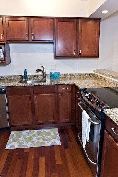 - New Maple Cabinets with Cherry Stain and Sleek Brushed Nickel Hardware