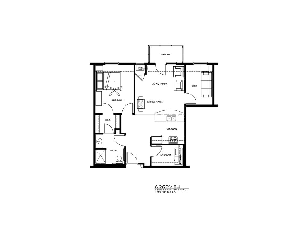 1 Bed, 1 Bath, 709 sq ftModel Gallery