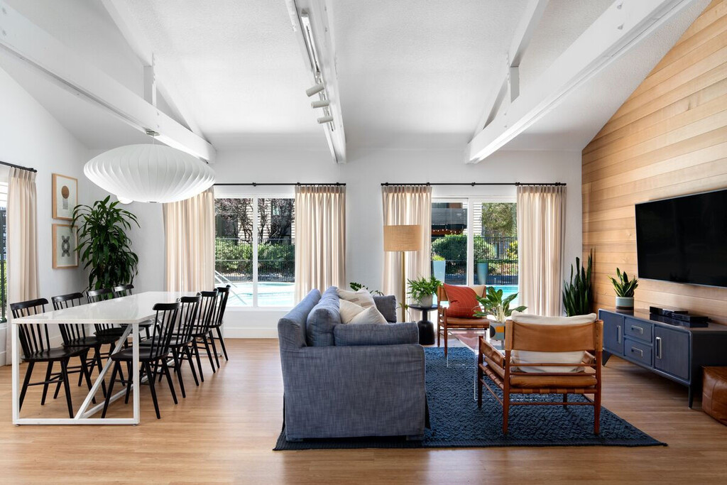 Stunning apartments that feel like a seaside retreat right in the middle of Santa Clara? Where do I sign up? Boardwalk is centered around bringing the outdoors in and vice versa. Gorgeous waterways and fountains flow throughout our large grounds, crisscrossing between walkways and ground-level waterfront patios. Never far from the water, ground floor apartments open directly onto The Lakes, with private, open patios that extend over the water. Second-floor apartments are bright and airy with vaulted ceilings and copious windows. At the heart of Boardwalk Apartments lies our clubhouse with a galley kitchen, a huge frame tv and sliding doors that lead directly to our saltwater pool deck.