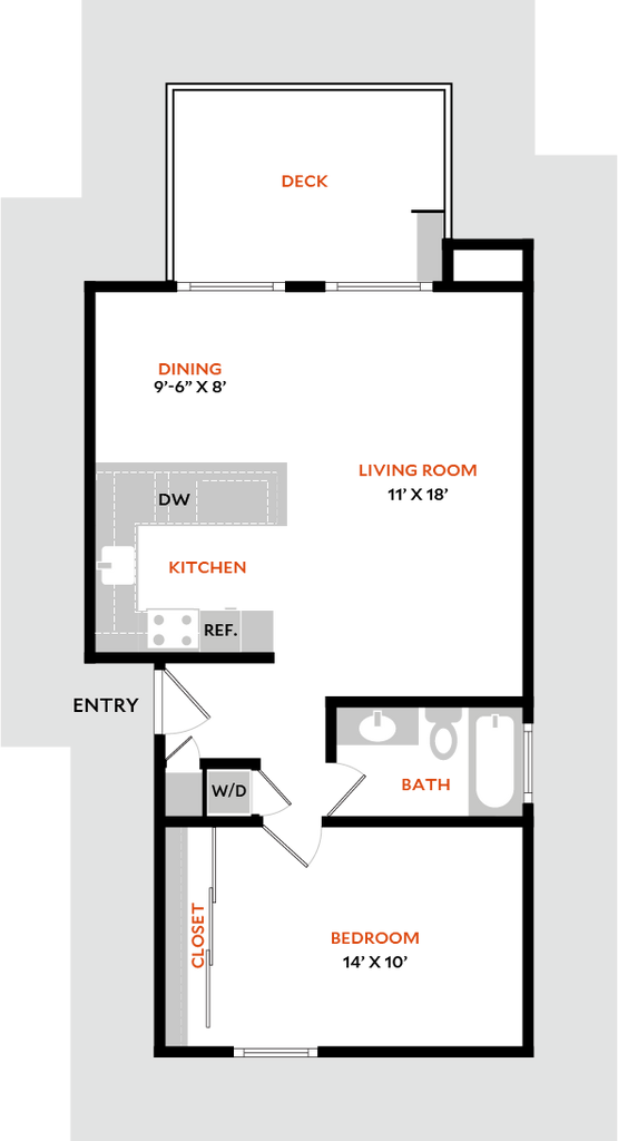 1 Bed, 1 Bath, 700 sq ftModel Gallery