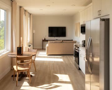Boardwalk Suites and Residences by Kasa offers modern, flexible living in the heart of the downtown Traverse City. Just steps from Grand Traverse Bay and the TART Trail, our property features a limited selection of 1-bedroom, 1-bath apartments with full kitchens, available furnished or unfurnished to fit your lifestyle. Cozy and welcoming—the perfect place to stay for as long as you like. Each residence includes in-unit laundry, contemporary finishes, open-concept layouts, and high-speed Wi-Fi. Residents enjoy access to a shared rooftop patio, offering a comfortable space to relax or socialize while taking in the beauty of Northern Michigan. Located within walking distance of Traverse City's best restaurants, shops, and waterfront parks. Boardwalk by Kasa combines convenience, comfort, and a low-maintenance lifestyle. With a flexible lease terms, self check-in, and on-site parking options, it's an ideal solution for both short-term and long-term residents.