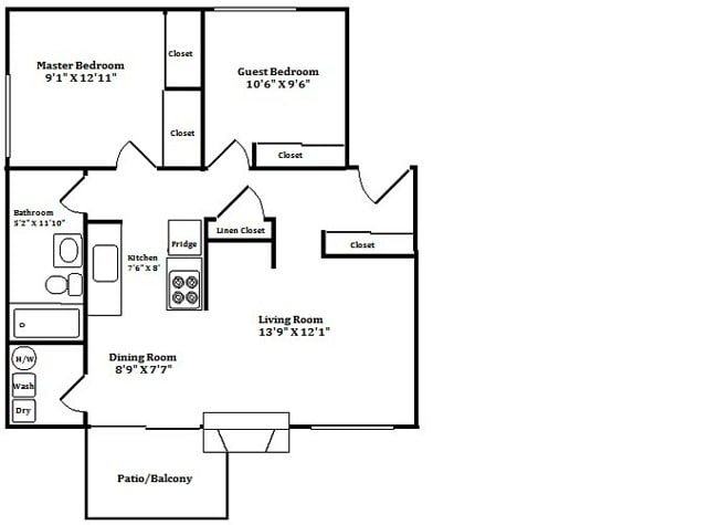 2 Beds, 1 Bath, 845 sq ftAvailable NowModel Gallery