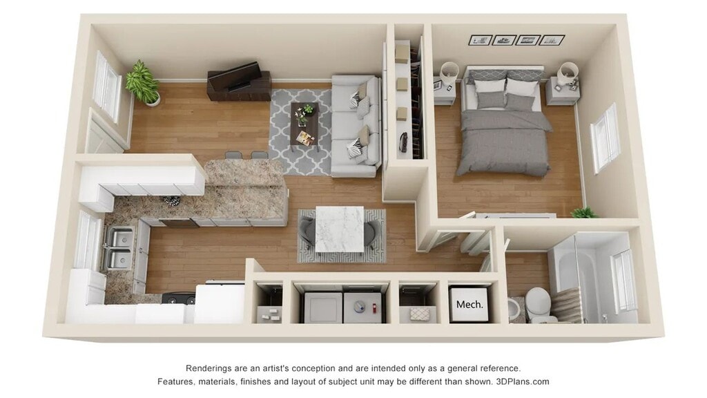1 Bed, 1 Bath, 555 sq ftAvailable NowModel Gallery