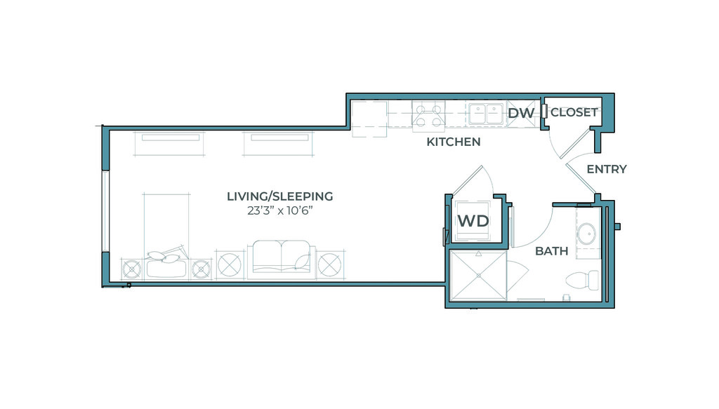 Studio, 1 Bath, 500 sq ftAvailable January 5, 2026Model Gallery