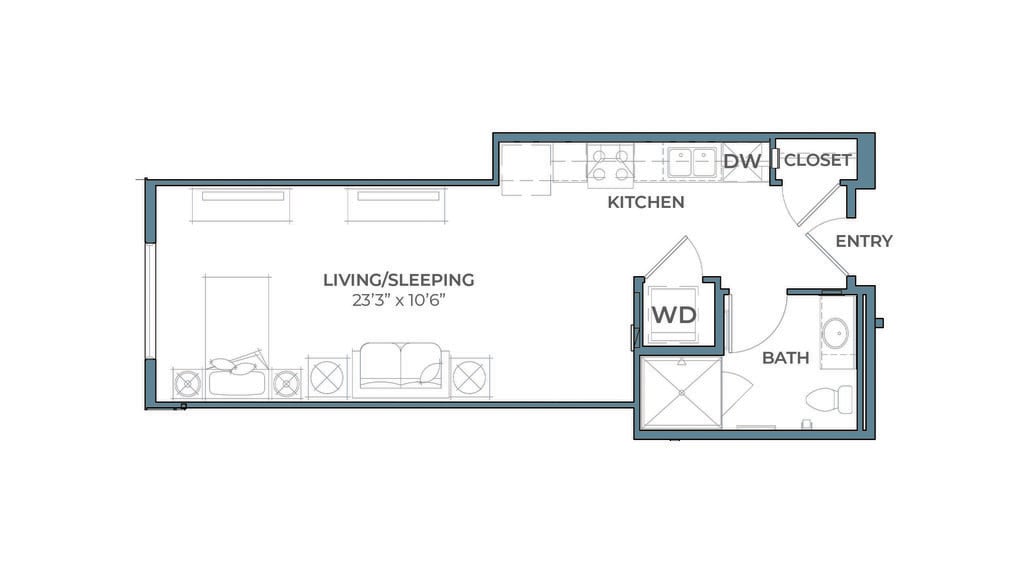 Studio, 1 Bath, 500 sq ftModel Gallery