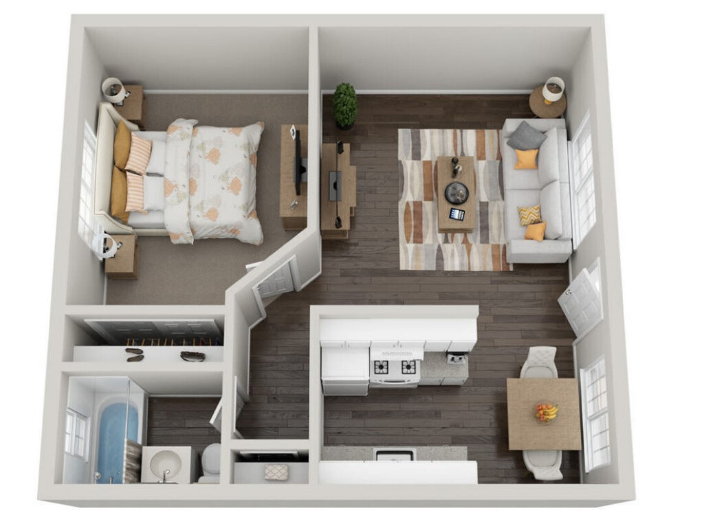 1 Bed, 1 Bath, 491 sq ftModel Gallery