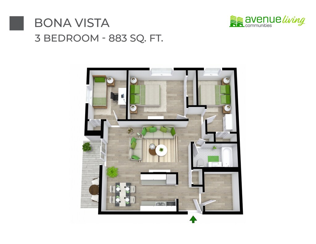 3 Beds, 1 Bath, 900 sq ftModel Gallery