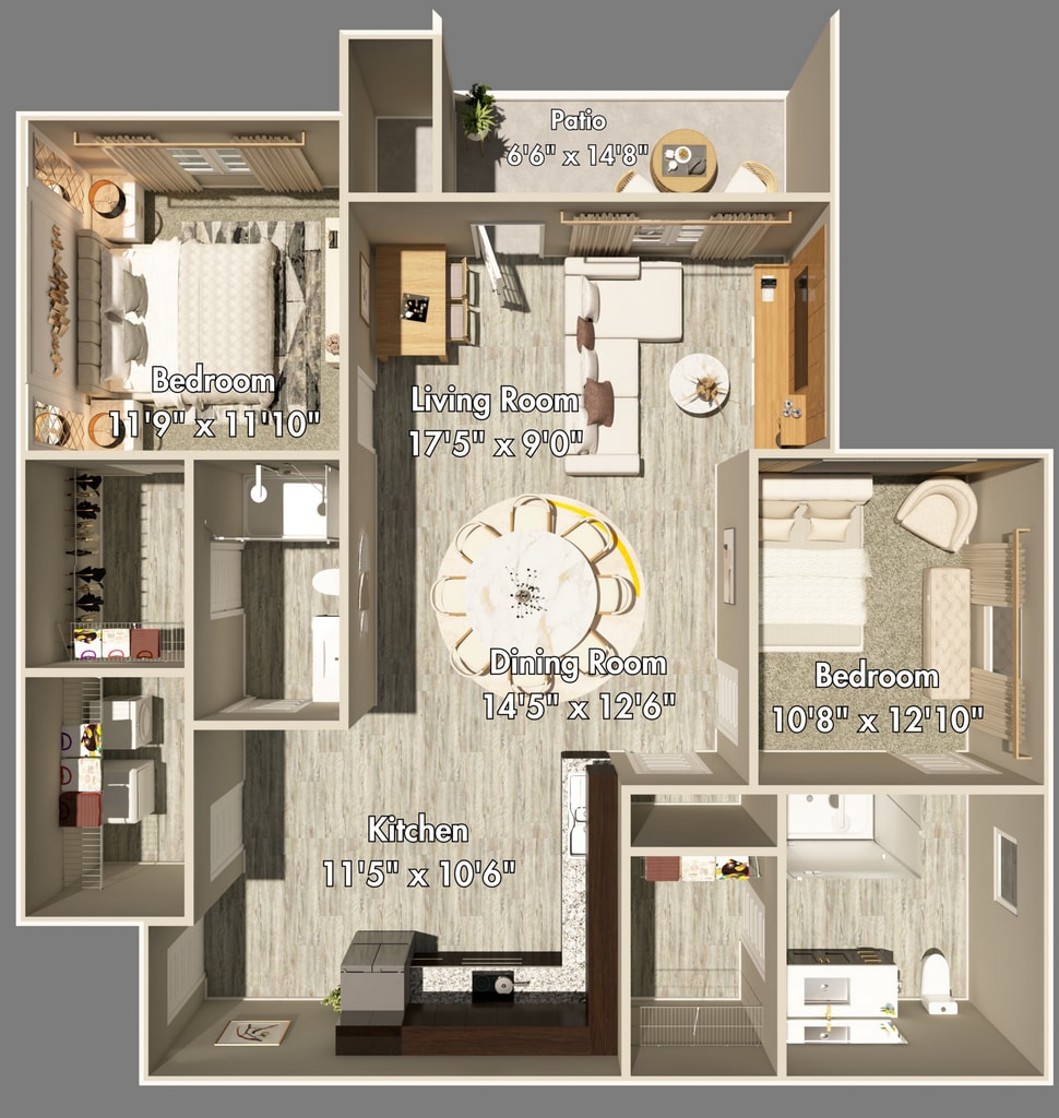 2 Beds, 2 Baths, 1317 sq ftAvailable NowModel Gallery