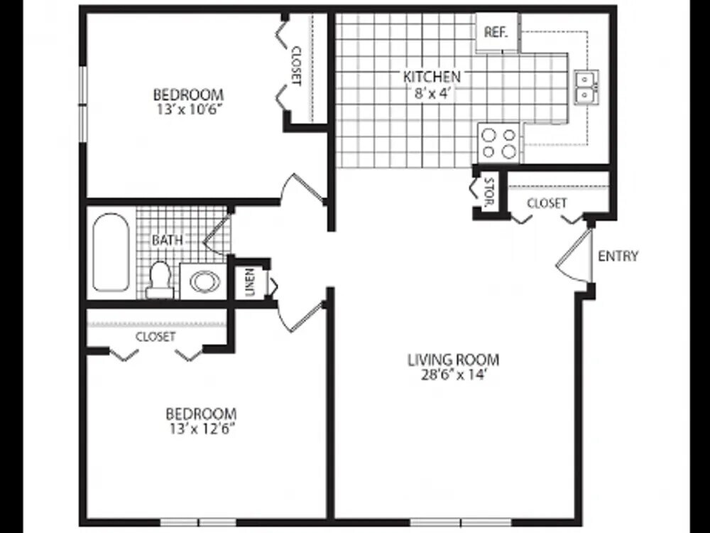 Apartment Model: Two Bedroom2 Bedroom, 1 Bath, 784 sq ftUnavailableFloorplansPhotos![]()