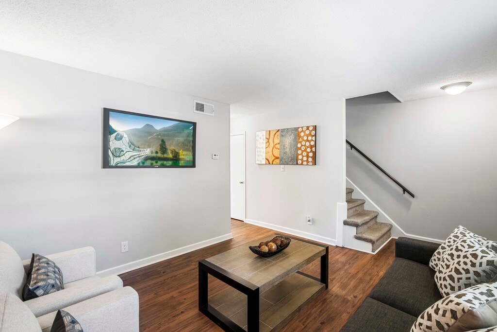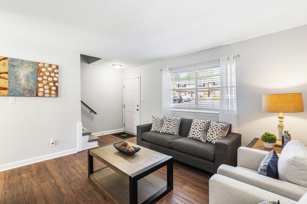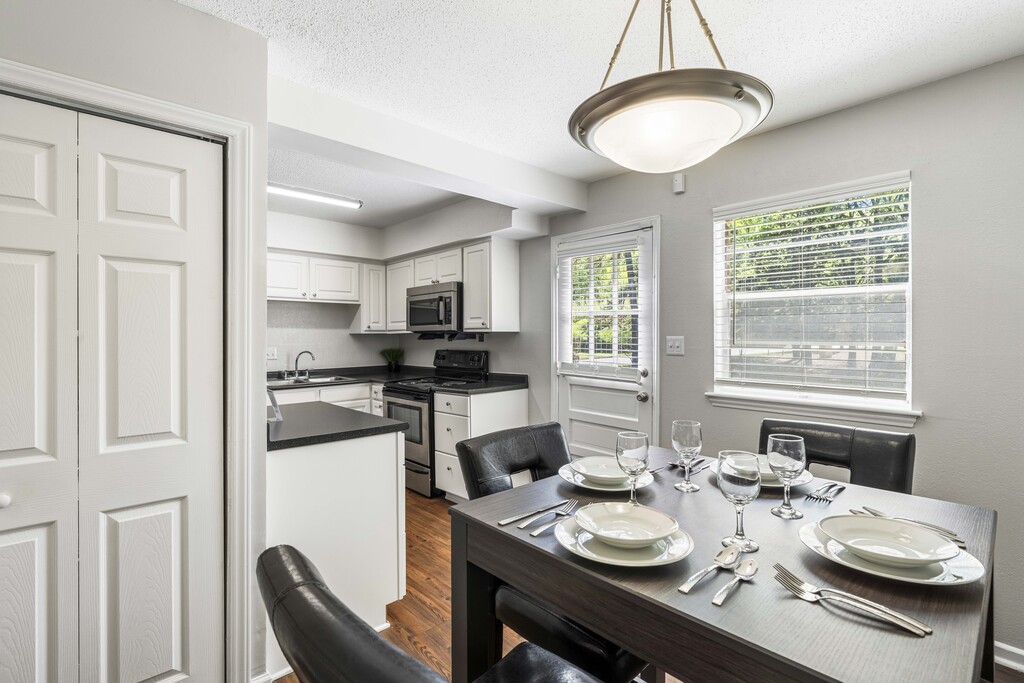 Booker Creek offers townhomes in a convenient Chapel Hill neighborhood near Franklin Street, in proximity to UNC, Durham, and great shopping and restaurants! Nestled in a serene, park-like setting, Booker Creek is situated in a prestigious residential area. Our two-bedroom townhouse styles have newly renovated kitchens with stainless steel appliances, large closets, kitchen bars, and washers/dryers. Children will enjoy the playground, there's a dog park for your furry best friend, and everyone can relax at the sparkling pool with free Wi-Fi.