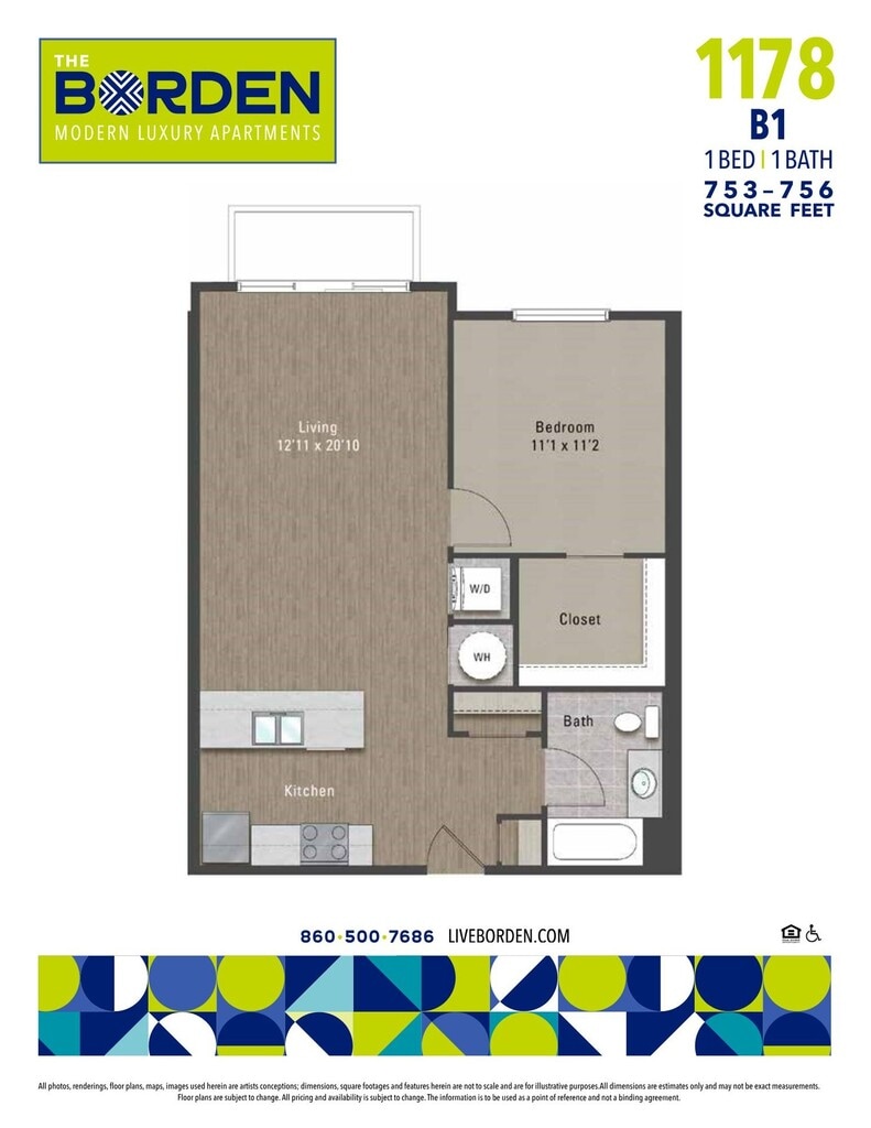 1 Bed, 1 Bath, 756 sq ftPlus FeesAvailable NowModel Gallery