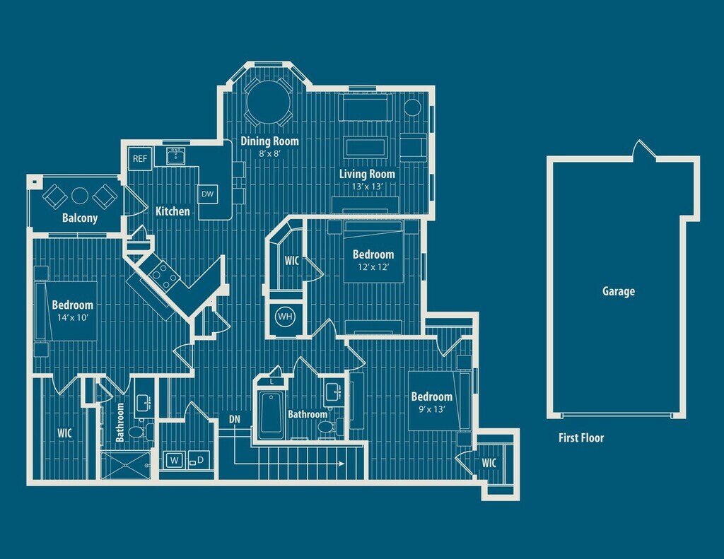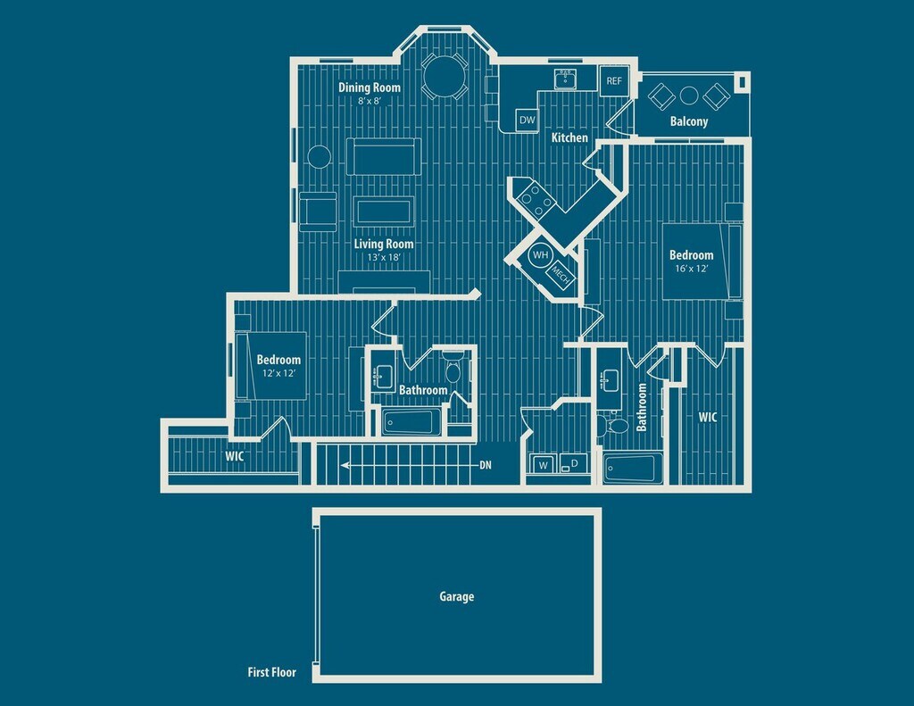 1 Bed, 1 Bath, 684 sq ftAvailable NowModel Gallery