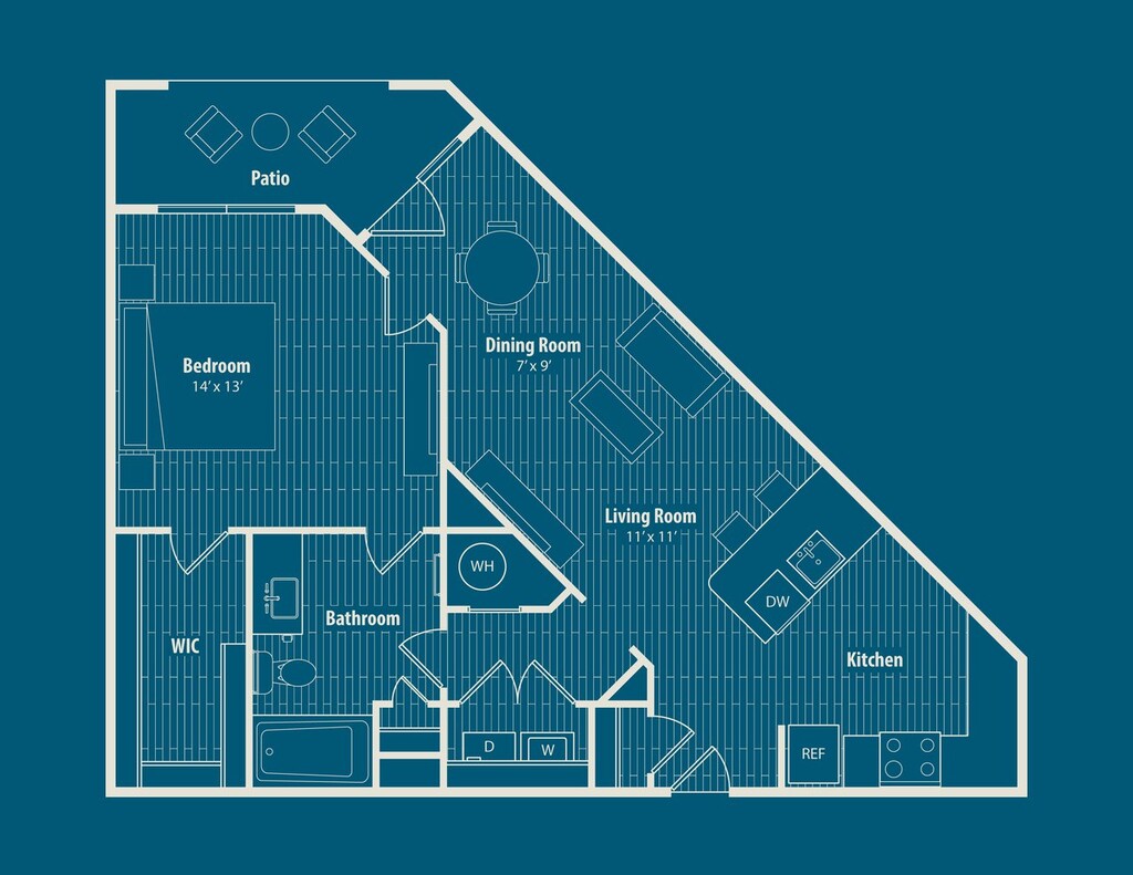 Apartment Model: A1From $1,3691 Bedroom, 1 Bath, 684 sq ftAvailable Now![]()