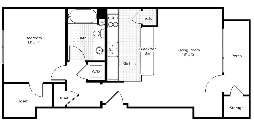 Apartment Model: 1E-S1 Bedroom, 1 Bath, 687 sq ftUnavailable![]()