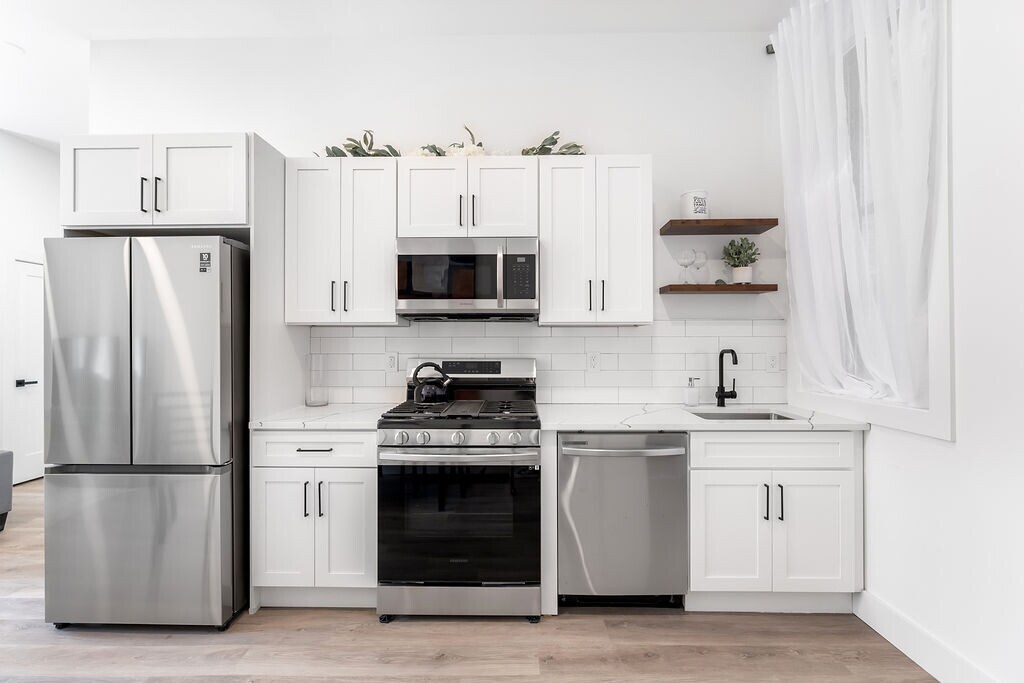 Welcome to Botany Gardens, a boutique 17-unit residential rental dwelling in the heart of Passaic, New Jersey. This notable property has been renovated with modern upgrades while still preserving some of its historic charm. Thorough hand restoration and exquisite repointing, has brought life back into the original red brick exterior, transforming it into a revitalized facade. The meticulously handpicked black finish products such as windows, hardware, and fixtures throughout contribute to the overall industrial chic aesthetic. Step inside the inviting foyer that showcases the original stairwell with iron rails. Marvel at soaring loft-style ceilings, with some homes reaching up to 10.5 feet high. The freshly painted walls and popular grey wood-like flooring stretches along the wide hallways and into each apartment, creating a seamless flow. Offering a range of 1 to 3-bedroom floor plans, the thoughtfully designed residences present unique layouts that cater to diverse renters. Inside each unit, you will find oversized windows that bathe your home in natural light, while carefully selected lighting fixtures illuminate the rooms. The kitchens are furnished with quartz countertops and stainless steel appliance packages including gas range oven, microwave, dishwasher, and 3-door refrigerator. Pamper yourself in the stylish bathrooms featuring glass-enclosed tub/shower combos with sleek black fixtures, and dual vanities in some of the units. Retreat to comfortable bedrooms, boasting ample closets for your belongings. Enjoy the convenience of central cooling & heating, and stackable full-size front-loading laundry all within the comforts of your own home. Botany Gardens, inspired by the city's botanical heritage, blends natural beauty with luxury, and provides exceptional indoor and outdoor amenities. Experience the ultimate outdoor oasis without leaving the property. On the ground level, take a stroll through the meticulously landscaped courtyard lush with greenery, gray pavers, bench seating, games, and grilling stations. Two shared patio decks are open year-round and can be accessed from the top floors each exhibiting a perfect space for residents to soak up the sun or look at the stars. The indoor residents' lounge with kitchenette is the ideal place kick back or socialize with neighbors. Looking to host a party or get together? Reserve and rent this area to entertain friends and family. Stay active at the well-equipped fitness center with nearby common bathrooms. Store your extra items with ease in specified lockers, as well as bikes and strollers in the dedicated spots. Situated in a prime location, on the border of the Botany Village section of Clifton, Botany Gardens delivers quick and close access to numerous shopping and dining options. The bustling area also has multiple transportation options within easy reach such as the Passaic, Garfield, and Clifton train stations, making travel and commuting a breeze. Explore Passaic's parks and green spaces, such as the historic Third Ward Park and Pulaski Park, where you can connect with wildlife and enjoy recreational activities.